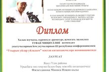 Бүген Казан шәһәренең Ф.Аитова исемендәге 12 нче номерлы гимназиясендә Т.Миңнуллин исемендәге III республика конференциясе булып узды. Әлеге конференциядә безнең мәктәпнең китапханәчесе Фәсхетдинова М.Н. катнашты һәм җиңүче дипломына лаек булды. Без аны котлыйбыз!