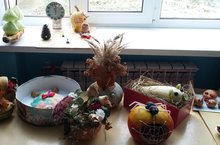 В нашей школе проходит конкурс поделок из овощей и фруктов "Осенние фантазии". На конкурс представлены работы из кабачков, картофеля, тыквы, моркови,яблок и осених листьев.