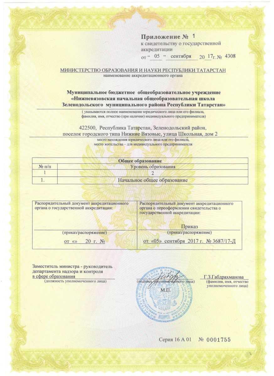 Муниципальное бюджетное общеобразовательное учреждение «Нижневязовская начальная общеобразовательная школа Зеленодольского муниципального района Республики Татарстан"/"Татарстан Республикасы Зеленодол муниципаль районы Түбән Карамалы башлангыч гомуми белем мәктәбе" муниципаль бюджет гомуми белем учреждениесе