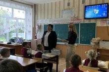 Учащиеся первых классов поличили в подарок "Культурный дневник школьника", книгу "Барсик и его друзья спасают природу" и сертификат на приобретение сим-карт "Билайн"