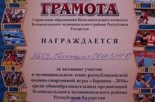 30 марта 2016 года на базе Гимназии № 5 города Зеленодольска прошел муниципальный этап республиканской военно-спортивной игры "Зарница – 2016. Учащиеся в возрасте 14-15 лет соревновались в таких конкурсах, как стрельба из пневматической винтовки, неполная разборка - сборка автомата АК-74, отжимания (у девушек) и подтягивания (у мальчиков), а также конкурс на знание истории и визитка.