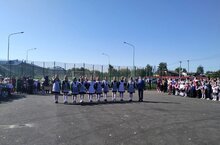 Советник директора по воспитанию и взаимодействию с детскими общественными объединениями Зайцева Юлия Анатольевна поздравила ребят с началом учебного года и вместе с активом школы внесли Государственные флаги Российской Федерации и Республики Татарстан. -