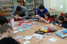 Студенты КАИ не оставили без внимания и наших дошкольников. Они играли в интересную складную игру - пазлы. Дети с большими стараниями строили из фрагментов рисунок целые картинки.