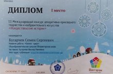 Поздравляем учащихся начальной школы "Обсерваторской СОШ" Бугарчева Семена, Зарипову Регину и Гилязова Жана - победителей и призеров международного конкурса декоративно-прикладного искусства "Рождественские истории"!