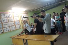 Затем старшеклассники состязались в веселых эстафетах «А ну-ка, парни!». Потом был организован увлекательный товарищеский волейбольный матч между командами юношеской сборной школы и командой учителей.