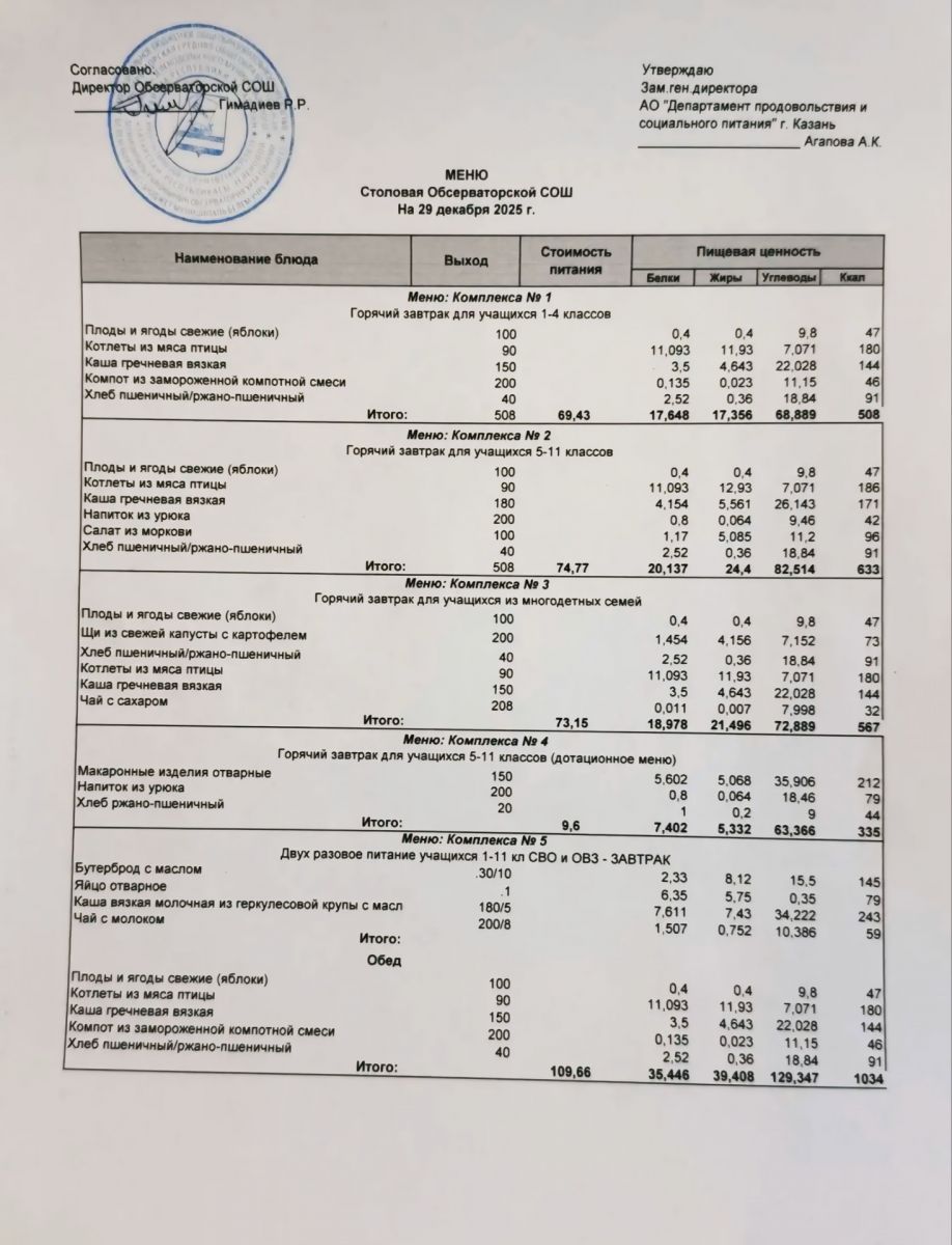 Меню на 2025-2026 гг.
