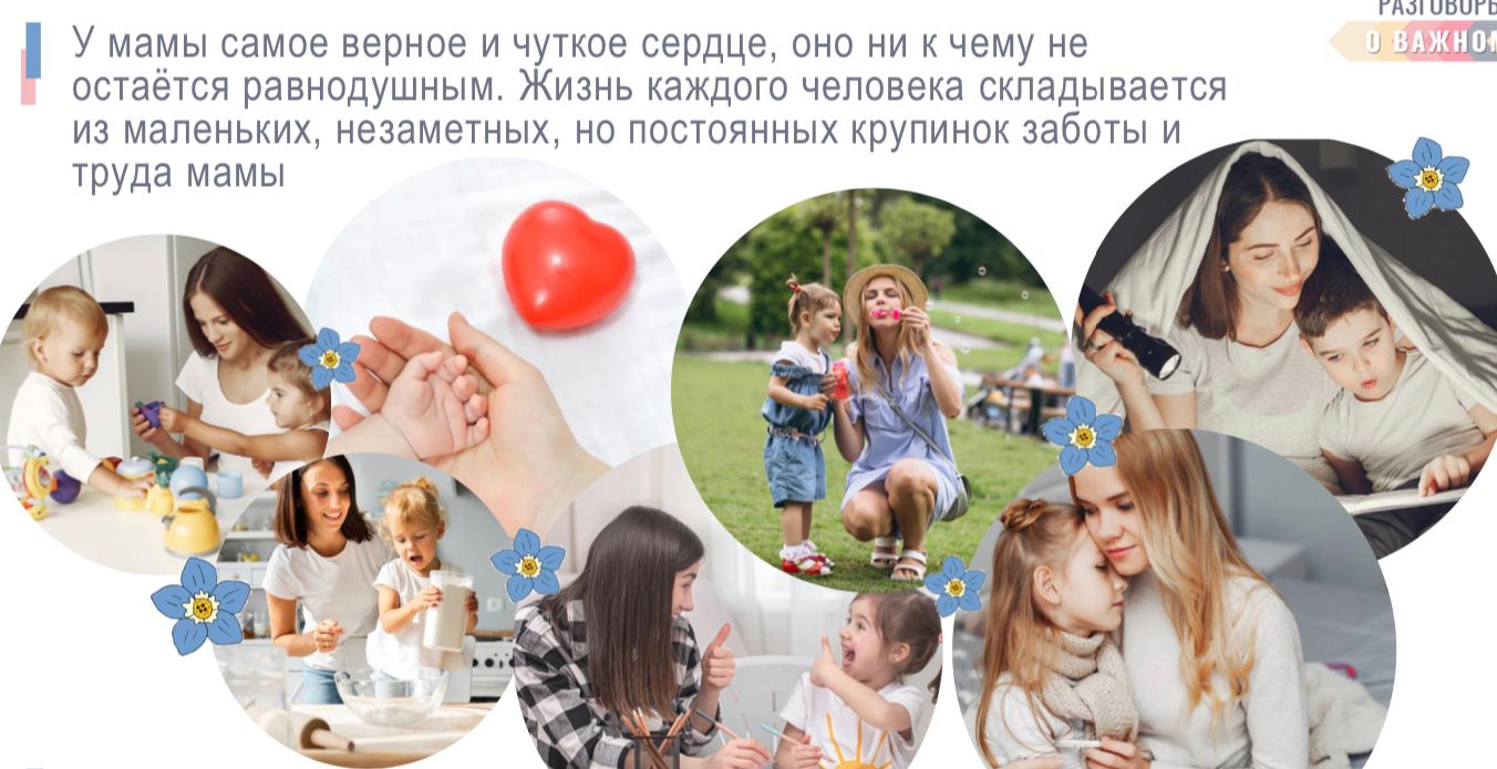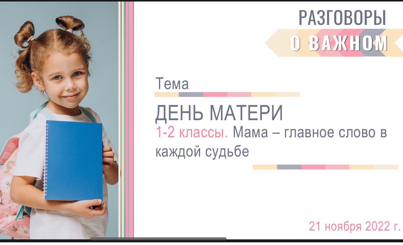 Опубликовано: 21.11.2022Сегодня прошло внеурочное занятие «Разговор о важном», посвященное Дню матери.