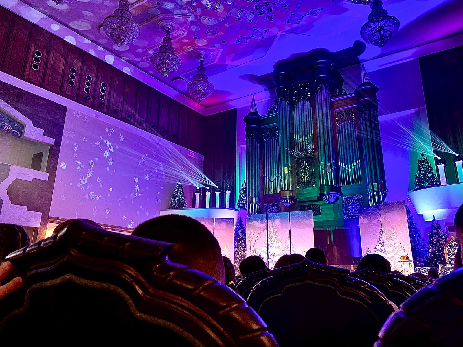 Совместно с классными руководителями, дети смогли окунуться в волшебный мир любимой сказки, а также услышать музыкальные шедевры европейских и российских композиторов. Красочное световое оформление и видеоинсталляции создали особенную праздничную атмосферу в эти чудесные новогодние дни.
