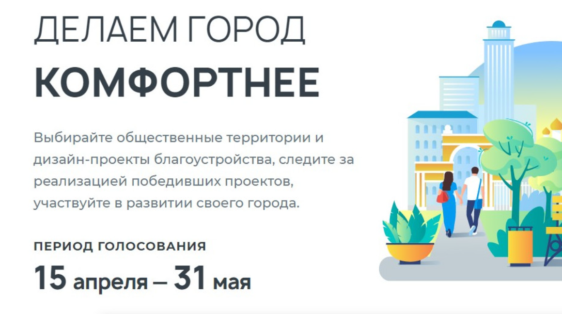 С 15 апреля по 31 мая 2023 года проходит рейтинговое голосование по отбору общественных территорий для благоустройства в 2024 году. В голосовании могут принять участие жители муниципальных образований с населением более 20 000 человек.