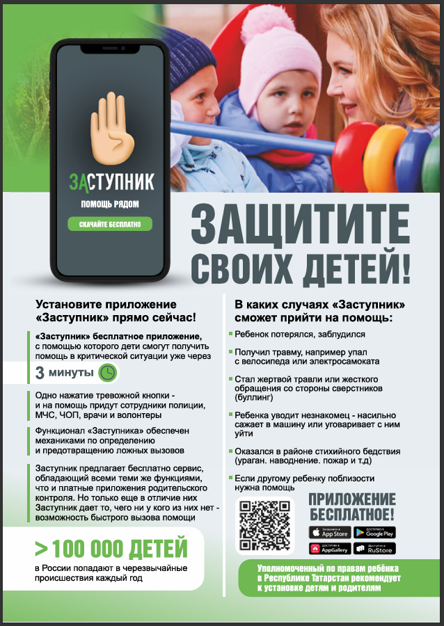 В Татарстане внедрено приложение «Заступник», направленное на защиту детей во внешнем мире. «Заступник» – это бесплатное мобильное приложение, с помощью которого дети смогут получить помощь в критической ситуации уже через 3 минуты.
