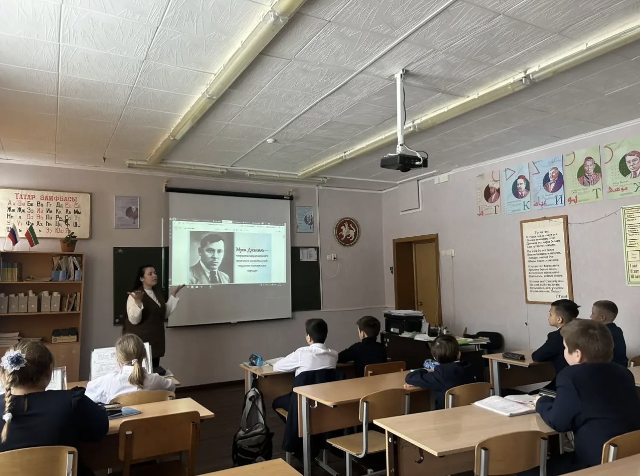 Такие уроки особенно важны: они помогают сохранить память о героях и прививают любовь к родному языку и культуре. / Бүген туган татар теле дәресендә без бөек шагыйрь, Советлар Союзы Герое Муса Җәлилнең тарихына һәм иҗатына чумдык.