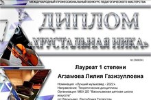 Поздравляем преподавателя музыкального отделения Васильевской ДШИ Агзамову Л.Г. с победой в Международном профессиональном конкурсе педагогического мастерства «Хрустальная Ника».Желаем новых творческих свершений!