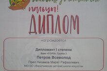 Поздравляем воспитанника музыкального отделения Васильевской ДШИ Петрова Всеволода с завоеванием диплома Дипломанта I степени на IV Всероссийском конкурсе –фестивале молодых исполнителей на народных инструментах «Головокружительные пальцы» Преподаватель Низамов М.Р. Желаем новых творческих свершений!