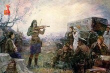 Рубрика "80 дней до Победы" Алексей Гландин "Песня о Родине" 1957 г. «Песня о Родине» - тоже дипломная работа выпускника Академии художеств и при этом фронтовика. Алексей Леонидович Гландин родился в 1922 году в Одессе, и назвали его Андрео Энглянди. Отец Леонардо Энглянди был итальянцем и умер, когда сыну исполнился один год. Поначалу мальчик воспитывался в доме итальянского консула, и тот собирался вывезти воспитанника в Италию, но мать в последний момент отозвала своё разрешение. Первым его учителем стал Григорий Цейтлин. В 12 лет Гландин стал одним из лучших учеников изостудии под руководством итальянца Антонио Дивари. В 1940 году он по рекомендации И. И.Грабаря без экзаменов был принят сразу на второй курс живописного отделения Одесского художественного училища. В первые дни войны будущий художник записался добровольцем и тогда же изменил итальянское имя на более привычное для советского уха. На фронте Гландин часто делал зарисовки , писал портреты однополчан. В итоге молодой художник был отправлен в штаб картографом к командующему 62-й армией генералу Василию Чуйкову. Со штабом Чуйкова Гландин дошел до Берлина. Считается, что он первым поднял телефонную трубку, когда на связь выходили представители немецкой армии с предложением о капитуляции. Вернуться в училище молодой художник смог только в 1949 году. Жена и единственный сын Гландина - тоже художник. #зеленодольск #городтрудовойдоблести #татарстан #80днейдопобеды #зеленодольскаядетскаяхудожественнаяшкола 03.05.2025