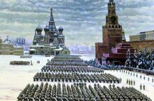 Рубрика "80 дней до Победы" День 9. Константин Юон "ПАРАД НА КРАСНОЙ ПЛОЩАДИ В МОСКВЕ 7 НОЯБРЯ 1941 ГОДА" Сюжетный центр картины Константина Юона — парад на Красной площади в честь 24-й годовщины Октябрьской революции в 1941 году. Это было тревожное время: битва за Москву в самом разгаре, линия фронта находилась всего в нескольких десятках километров от столицы. Многие политические деятели считали проведение парада в критический для страны момент нецелесообразным, так как денег не хватало даже на первостепенные нужды Красной армии. И все же он состоялся, показав тем самым — боевой дух народа не сломлен, а Москва никогда не будет отдана врагам. Сама Москва на картине Юона — это не просто фон. Столица выступает одним из главных действующих лиц наряду с военными. Небо заволокло тучами, снег хрустит под тяжелым стройным шагом солдат, вдалеке дымят трубы МОГЭСа… Такую Москву, суровую, сосредоточившуюся, мобилизовавшую все свои силы, изображает на полотне художник. Парад не похож на те, которые столько раз видела Красная площадь: нет зрителей, с флагами и цветами приветствующих красноармейцев, да и сами солдаты одеты не в парадную, а в походную форму: отсюда — прямиком на фронт. Двумя центрами картины становятся Спасская башня и храм Василия Блаженного как символы Москвы и грандиозных военных побед прошлого. 28.02.2025