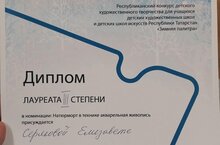 8 января 2025 года в Казанском художественном училище прошел ежегодный Республиканский конкурс среди учащихся художественных школ и школ искусств "Зимняя палитра". В этом году номинация конкурса была акварельная живопись. Зеленодольскую детскую художественную школу представляли 4 ученика старших классов - Шигабутдинов Владислав, Серякова Елизавета, Каримова Ясмина и Безгодов Иван. По итогам конкурса ученица Серякова Елизавета (преподаватель - Макаров Валерий Иванович) стала лауреатом 3 степени. Поздравляем! 10.01.2025