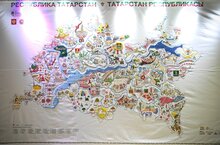3 июля на фестивале «Возрождение. Эпос в современном прочтении», который проходил на территории Болгарского государственного историко-архитектурного музея-заповедника, презентовали вышитую карту Татарстана. За весь период было подготовлено два вышитых полотна размером 3х5, 2х3 метра. Вся вышивка сделана на водонепроницаемом материале. Вышитое полотно дополнила выставка традиционных вышитых полотенец муниципальных районов. Министр культуры республики Ирада Аюпова представила творение мастеров главе (Раису) Татарстана Рустаму Минниханову. Акция «Вышитая карта Республики Татарстан» стартовала в феврале 2023 года. Организаторы проекта – Министерство культуры Республики Татарстан, ГБУ «Таткультресурсцентр». Научный консультант проекта – доктор искусствоведения, заслуженный деятель науки РТ, главный научный сотрудник в АН им. Ш. Марджани Г.Ф. Валеева-Сулейманова; консультант технологии исполнения эскизов, руководитель авторской мастерской «БЮРО БАНУ» – Элара Шайхи. Партнерами проекта выступили АНО «Центр содействия сохранению исторического и культурного наследия Татнефть-Наследие», Институт истории имени Ш. Марджани Академии наук РТ, Институт татарской энциклопедии и регионоведения АН РТ, Казанский техникум народных художественных промыслов, Национальный музей Республики Татарстан. 43 муниципальных района и 2 городских округа республики создали свои фрагменты карты Татарстана с территориальными и культурными особенностями. В создании приняли участие народные и самодеятельные мастера, профессиональные художники-прикладники, владеющие вышивальным искусством. В начале 21 века многие техники вышивки начали забываться, поэтому мастерам пришлось обратиться к музейным экспонатам для ее возрождения. «Мы все знаем, какой тяжелый путь мы все вместе прошли: начиная от шаблона и создания эскиза до воплощения и презентации. Целыми сутками мы изучали технику тамбурного шва. Именно таким образом мы хотим показать, что наш татарский орнамент не уходит в забытье. Хочется сказать большое спасибо мастерицам, создавашим карту. Надеюсь, вы продолжите использовать эту технику в своем творчестве и в дальнейшем», — добавила дизайнер и соучредитель бренда BURO BANU Элара Шайхи. 26.07.2023