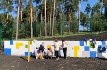 В конце летней практики у наших детей появилась возможность попробовать свои силы в монументальной живописи44 плиты,80 м2 были расписаны акриловыми красками по бетонной стене. Был организован конкурс компанией Мир групп совместно с Зеленодольской детской художественной школой.Ребятам предложили 3 темы для росписи 1.Спорт 2.Экология города 3. Культура. По итогам конкурса участникам выдадут благодарственные письма и сертификаты в канцелярский магазин 13.06.2023