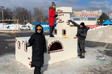 Подготовка к празднованию Масленицы преподавателями Детской художественной школы и Детской школой искусств - реставрация русской печки и экспозиционных площадок, оформление фотозоны сеном. 07.03.2022