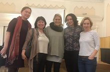 Мастер-класс по академическом вокалу профессора Венской консерватории Урсулы Лангмайер (Австрия) в г. Казань посетили педагоги вокального отделения А.К.Назмутдинова, Е.Ю.Николаева, С.М.Сарандова, Й.И.Шамгунова. У.Лангмайер гастролирует как солистка, оперная примадонна и солистка ораторий по всему миру. Мастер-класс длился 3 часа, были затронуты вопросы различия итальянской и немецкой вокальной школы, работа над фразировкой, произношением, осмысленным художественным исполнением. Неоценимый опыт получили наши педагоги от общения с известной певицей. -