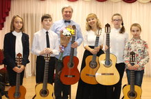 24 октября 2017 года в Малом зале ДМШ состоялась Творческая встреча с Заслуженным деятелем искусств РТ, доцентом КГК им. Н.Г.Жиганова, заместителем председателя Союза композиторов РТ, композитором, лауреатом Международных конкурсов Харисовым Виталием Вакифовичем. Мероприятие организовали и провела преподаватель ДМШ Королькова Евгения Владимировна при поддержке администрации школы. В рамках мероприятия прошли презентации сборников Харисова В.В.. Для гитары соло - сборник "Двадцать обработок татарских народных песен", для дуэта гитар - премьерное проигрывание Сюиты для дуэта гитар "Кулинарная сюита". В иллюстрации последнего произведения приняла участие педагог ДМШ, лауреат Международных конкурсов Королькова Е.В.. Второй частью мероприятия стали мастер-класс Харисова В.В. с учащимися по классу гитары ДМШ: Горшкова Кира, Пыркова Дарина, Шарафутдинов Владислав, Никишина Виктория (преп. Королькова Е.В); Ефремова Светлана (преп. Хуснутдинова Е.А.). Мероприятие прошло на одном дыхании, произведения Харисова были встречены бурными овациями. Виталий Вакифович высоко оценил педагогическую работы Корольковой Е.В. и общую организацию мероприятия. Достойной точкой, завершающей мероприятие, слал "круглый стол" педагогов по классу гитары ЗМР РТ и города Волжска Марийской республики с Харисовым В.В. по проблемам педагогики, методики преподавания и исполнительства на классической гитаре в ДМШ и ДШИ.