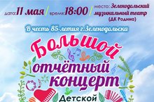 В честь 85-летия г.Зеленодольска БОЛЬШОЙ ОТЧЁТНЫЙ КОНЦЕРТ ДМШ. На сцене учащиеся и преподаватели ДМШ! В программе лучшие произведения классической и современной музыки. Дата: 11 мая/ время: 18.00/место: Зеленодольский музыкальный театр (ДК Родина). Информация по тел. 4-98-30, 5-75-81. Билеты в кассе ДМШ.