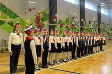 В течение нескольких недель команды 2-8 классов готовились к этому дню: разучивали песни, учились ходить строевым шагом, подбирали соответствующую форму.
