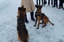 Курсант кинологического факультета Пермского Военного Института Войск Национальной Гвардии Российской Федерации Ильдар Шайхуллин и его помощник Никита Тимофеев познакомили учеников 8 Д класса с «учёными» питомцами – овчарками Заграей и Оришей. Ребята получили навыки воспитания и дрессировки собак, узнали об учебном заведении, где учат редкой и интересной профессии – кинолог, и, конечно, получили огромное удовольствие от контакта с умными и прекрасными собаками. -