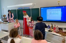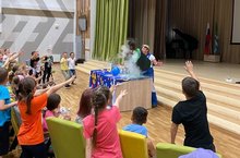 Сегодня, 16 июня, для ребят пришкольного лагеря выступала театральная студия «Бала» с научным шоу «Веселая пробирка». Ребятам показали опыты, которые можно повторить дома вместе с родителями. Все остались в восторге