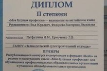 Поздравляем победителей, студентов нашего колледжа - Рукавишникова Илью и Федорову Екатерину, которые заняли 2 Место в номинации "Моя будущая профессия" - видеоролик на английском языке! Спасибо наставникам конкурсантов - Лутфуллиной Н.М. и Ермоченко Л.В.! Желаем дальнейших творческих успехов и профессиональных побед!