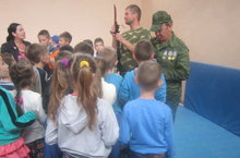 Мәктәп яны лагерына йөрүче балаларга патриотик тәрбия бирү максатыннан “ Боевое братство” оешмасыннан кунаклар килгән иде. Алар автомат сүтеп җыю, противогазларны дөрес куллана белү серләренә өйрәттеләр. Балалар кунакларыбыз белән бик теләп аралаштылар, очрашу күңелле узды.