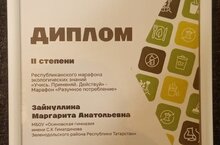 Экологик отряд җитәкчесе Зәйнуллина М.А. "Чиста булсын" оешмасы уздырган экологик марафонда катнашты һәм 2 дәрәҗә Диплом белән бүләкләнде. Чын күңелдән котлыйбыз һәм уңышлар телибез!