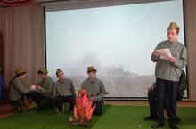 7 нче В сыйныф укучылары (сыйныф җитәкчесе - Гибадуллина Г.И.) "Җиңү авазы" дип исемләнгән сәхнәләштерелгән тамаша күрсәттеләр. Балалар да, олылар да тарихи мизгелләр аша янә сугыш ачысы китергән авырлыкларны, халкыбызның яшәешен күзаллады. Батырларыбызга мәңгелек дан!