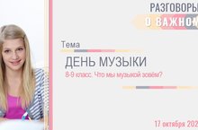 17 октября Разговор о важном посвящен Дню музыки. "Что мы музыкой зовем?" - тема занятия в 8-9 классах. Цель занятия: расширение представлений обучающихся об искусстве, в частности, о музыке.