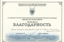 С 29 октября по 1 декабря прошла очередная республиканская профильная смена антинаркотического проекта "Самостоятельные дети". В этом году в Республиканский детский оздоровительно-образовательный центр "Костер" были направлены ученик 7г класса Патракеев А. и ученица 9б класса Калина А. (победители акции и набравшие наибольшее количество стикеров). Калина Анастасия получила благодарственное письмо и флеш-карту от прокуратуры РФ и РТ за активное участие в Республиканском антинаркотическом месячнике "Жизнь без наркотиков"