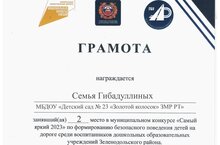 Балалар бакчасында тәрбияләнүчеләр "иң якты Мин" һәм «иң якты гаилә»муниципаль конкурсларында катнаштылар. Конкурста катнашучылар кышкы киемнәрдә яктылык кайтаручы элементлар күрсәттеләр. Конкурсантлар мондый якты киемнәрдә Юлда һәрвакыт куркынычсыз булачагына ышана.
