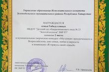 | Короткое название: | МБДОУ "Детский сад общеразвивающего вида № 23 "Золотой колосок" ЗМР РТ" |