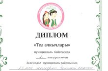 Тулырак: http://yashel-uzan.ru/news/yash%D3%99esh/tatar-malae-tatar-kyzcygy-202330 марта на базе детского сада № 11 Зеленодольского района совместно со Всемирным конгрессом татар в целях выявления и развития талантов среди детей, приобщения дошкольников к духовным традициям и историко-культурному наследию татарского народа были подведены итоги муниципального конкурса среди детей дошкольных образовательных организаций «Татар малае, татар кызчыгы - 2023». Наша воспитанница Гибадуллина Малика заняла 2 место!!! Молодцы!!! Желаем дальнейших успехов!!!