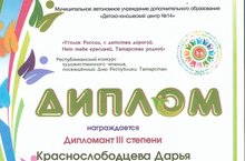 Известны итоги Республиканского конкурса художественного чтения «Уголок России, с детства дорогой. Нет тебя красивей, Татарстан родной», посвященного Дню Республики Татарстан. От всей души поздравляем воспитанницу 8 группы нашего детского сада Краснослободцеву Дарью с победой!!! Молодец!!! Выражаем огромную благодарность воспитателю Горелкиной Татьяне Викторовне и родителям за помощь в подготовке к конкурсу!