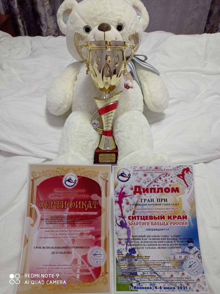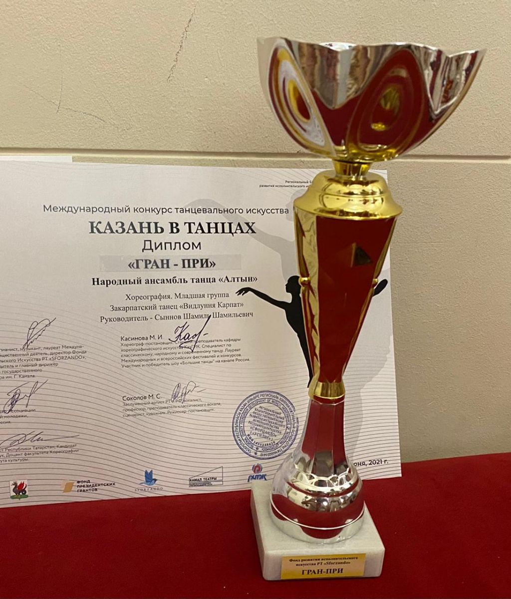 5 июня 2021 года 6 группа объединения «Алтын» приняла участие в Международном конкурсе танцевального искусства «Казань в танцах». В номинации «Хореография. Младшая группа» закарпатский танец наших девочек и мальчиков выиграл «ГРАН-ПРИ»! В тот же день 4 группа объединения «Алтын» выступала в городе Иваново на конкурсе «Ситцевый край золотого кольца России»… и тоже удостоилась звания «ГРАН-ПРИ»! В один день в двух городах 2 большие награды!!! ПОЗДРАВЛЯЕМ!!!
