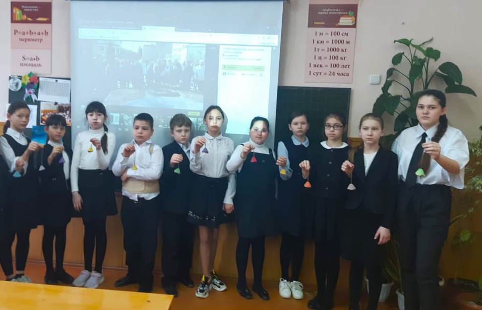 11 апреля 2021 года активист объединения "Отрядный вожатый" Сингатуллина Шамиля провела муниципальную акцию "Колокольный звон" для учеников начальных классов. Участники акции почтили память погибших узников концлагерей минутой молчания и колокольным звоном из самодельных колокольчиков. Ссылка на фото Колокольный звон.jpg