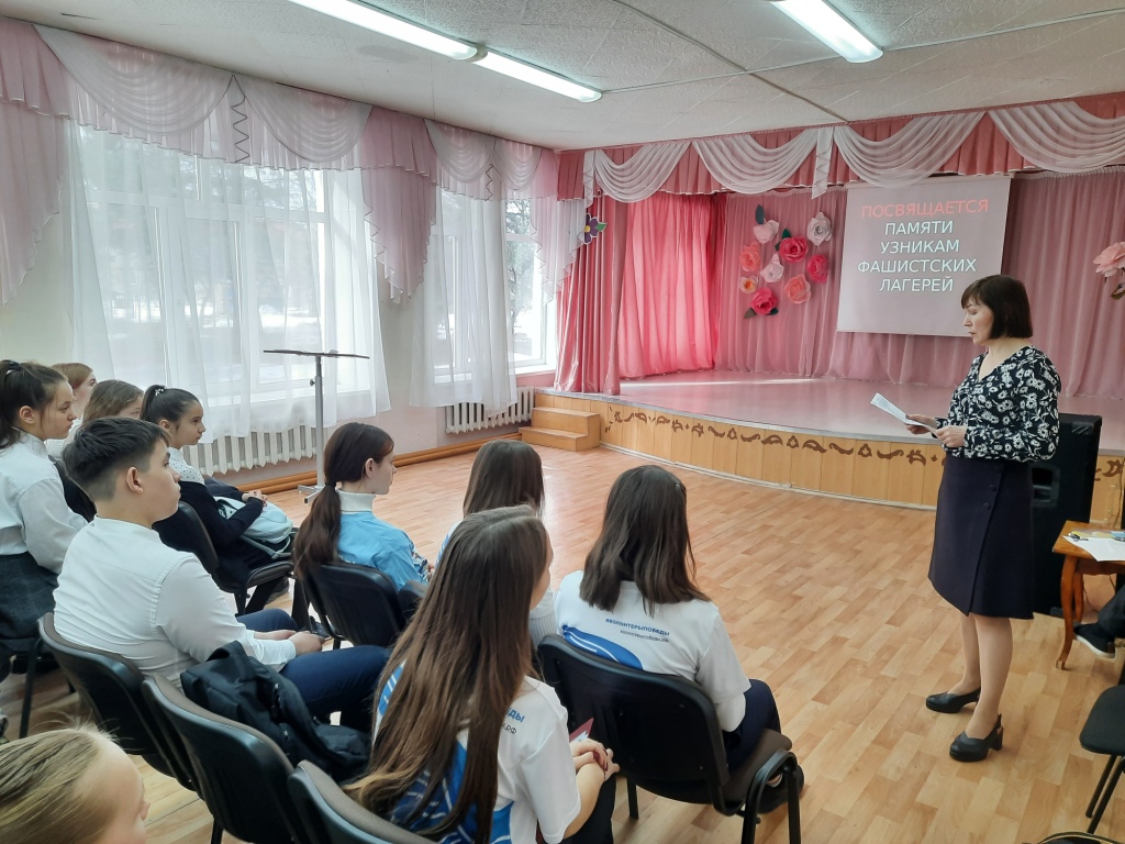 8 апреля 2021 года Волонтеры Победы объединения "Я-доброволец! Я-волонтер!", "ВСОШ №2 им.Героя Советского союза Н.Соболева" и Районный Совет провели для учеников 7-9 классов тематическое мероприятие "Надо помнить...", посвященное дню освобождения узников из концлагерей. Волонтеры рассказали о неимоверных тяготах нацистского плена и мучительной смерти миллионов человек в концлагерях Бухенвальд, Освенцим, Дахау и Майданек. Документальный фильм "Воспоминания малолетних узников концлагерей" заставил подавляющее большинство участников встречи искренне сопереживать. Эти сопереживания были выражены в Минуте молчания в память об этих трагических событиях и погибших людях… Ссылки на фото Надо помнить 1.jpg Надо помнить 2.jpg Надо помнить 3.jpg Надо помнить 4.jpg