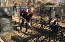 Уборка на территории Братской могилы и захоронения Героев Великой Отечественной войны -