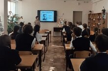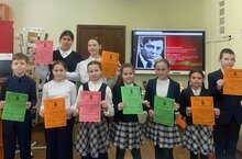 Обучающиеся объединения "Татарский театр "Сэхнэ" на занятии, посвященном 120-летию со дня рождения Мусы Джалиля - Героя Советского Союза, советского татарского поэта, военного корреспондента.