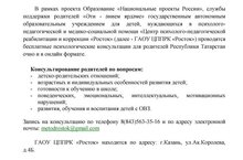 для родителей Республики Татарстан! Запись на консультацию по телефону 8(843)563-35-16 и по адресу электронной почты: metodrostok@gmail.com