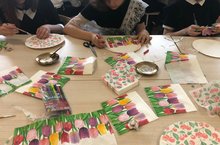 Учащиеся объединения «Креативное рукоделие» (педагог дополнительного образования Салахиева Роза Наиловна) на занятии дружно постигают искусство декупажа. Вырезанные цветы и ягоды превращают одноразовые тарелки в предметы декоративно-прикладного искусства! Фото https://vk.com/cvrzmrrt?z=photo-216458578_457240741%2Fwall-216458578_355