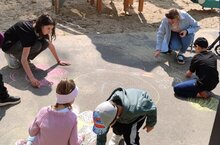 День защиты детей - это день длиною в целый год! Наступили каникулы - начали действовать дворовые площадки Центра внешкольной работы! Педагог Лазарева Наталья Сергеевна пригласила всех ребят на увлекательное занятие - рисование мелом на асфальте на свободные темы! Девиз занятия "Давайте вместе создадим яркие и весёлые рисунки, посвящённые счастливому детству!" -