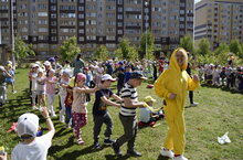 Продолжается благоустройство детского сада. В качестве живой изгороди были высажены 150 кустов японской спиреи.