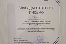 В рамках августовского совещания работников образования и науки Зеленодольского муниципального района Республики Татарстан подвели итоги работы за 2022-2023 учебный год. Были отмечены достижения и успехи. Наш педагогический коллектив был отмечен благодарственным письмом начальника ОГАИ ОМВД России по Зеленодольскому району Идиатуллина Р.И. за большой вклад в обеспечение безопасности дорожного движения и активное участие в развитии ЮИД в Зеленодольском районе. Поздравляем педагогический коллектив!!!