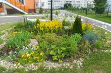 Цветочная клумба - неприменный атрибут участка современного детского сада. Яркие цветники радуют взгляд дошкольников и их родителей. Гордостью територии нашей Прогимназии является розарий и альпийская горка.